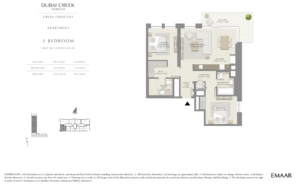 Taking up an area of six square kilometres, Dubai Creek Harbour includes residential units, offices, and commercial spaces, as well as leisure and entertainment areas. With only 10 minutes' drive to Dubai International Airport and Downtown Dubai, this property is an ideal residential and business location. Soon a dedicated metro station will also serve the resident offering seamless and fast connection to the other part of the city.